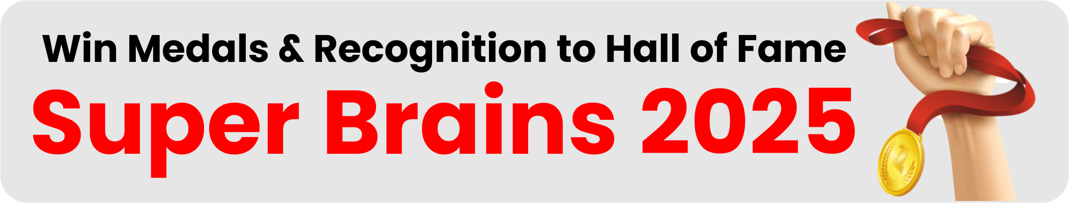 Medals (Gold, Silver, Bronze, Ivory) and Merit Certificates. Top scorers enter Super Brains 2025 Hall of Fame.
