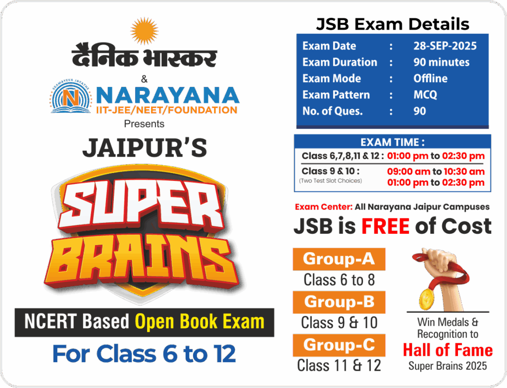 JSB: 28 September 2025 | 90 Minutes | 90 MCQs | Offline Exam at Narayana Jaipur campuses