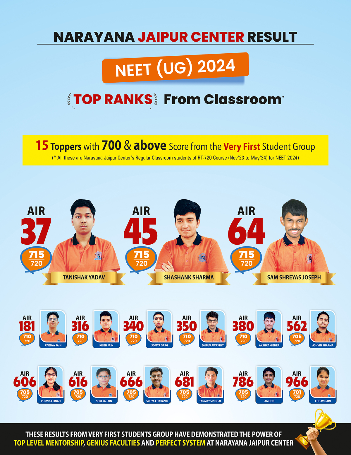 Click here to Check NEET 2024 Result of Narayana Jaipur : 3 AIRs in Top 100 & 15 AIRs in Top 1000